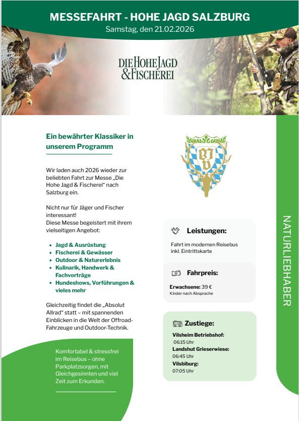 Einladung zur Pflichthegeschau mit Mitgliederhauptversammlung der BJV Kreisgruppe Landshut e. V.